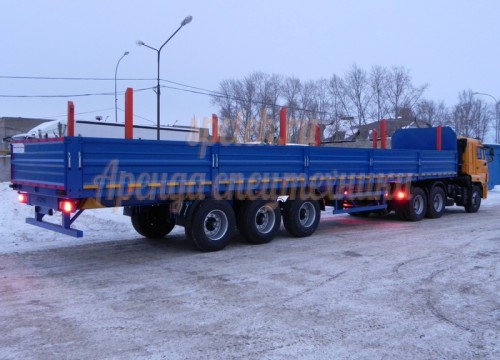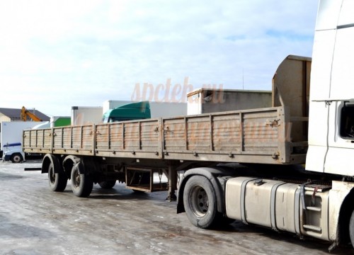 Грузоподъемность 30 тонн. Длинна 13 метров. Ширина борта 2,5 метров.